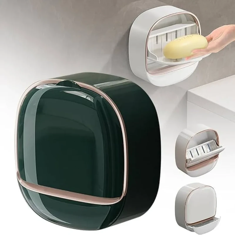> ঢাকনাযুক্ত সাবান বক্স — ছিদ্র ছাড়াই সহজ ইনস্টলেশন, শুকনো সাবান রাখার স্মার্ট সমাধান 💚