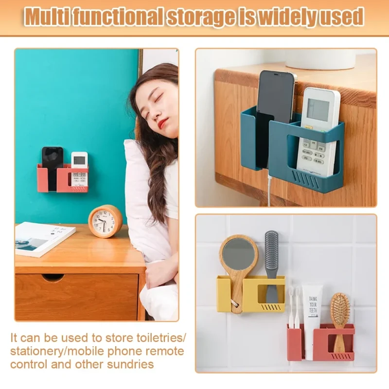 New 2 in 1 Wall Mounted Storage Box Multifunction Punch Free Organizer TV Remote Control DIY Mobile Phone Plug Charging Holder